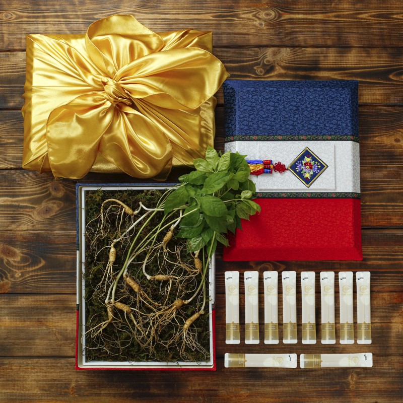 [고급포장][더 기다림]강원도 토종 산양산삼 선물세트12호[5-6년근 10뿌리+천연벌꿀 10봉]