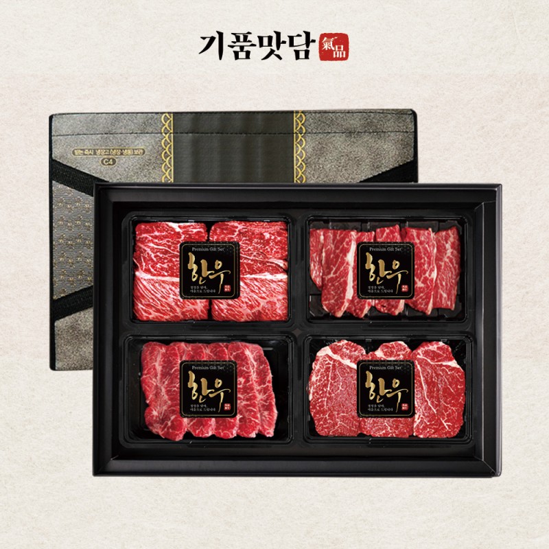 [기품맛담] 한우 1등급 프리미엄 꽃등심/채끝 모듬구이 선물세트 3호 1.2kg