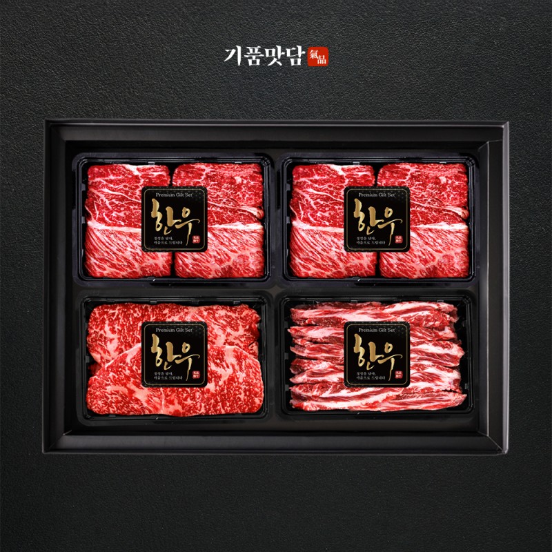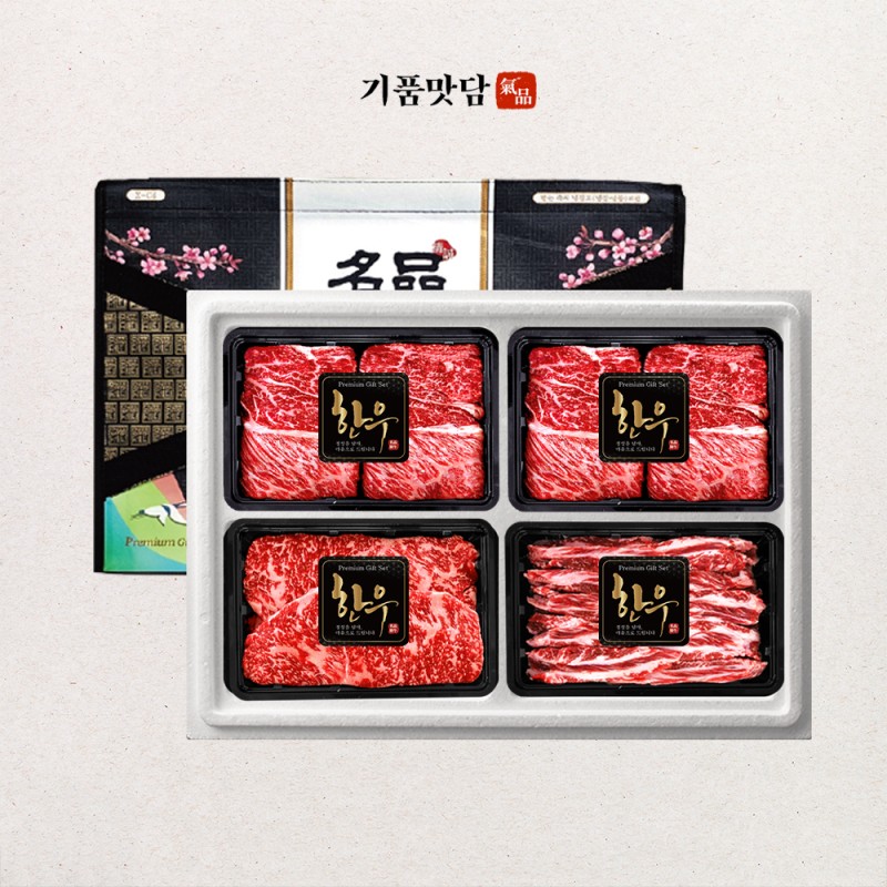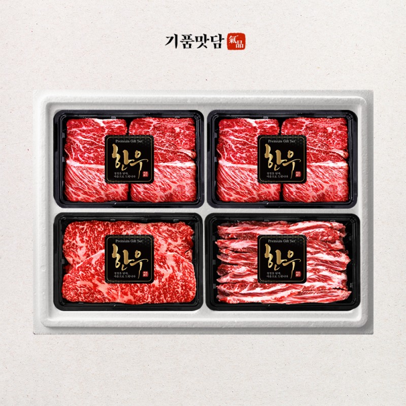 [기품맛담] 한우 1++등급 프리미엄 꽃등심/채끝/갈비살 모둠구이 선물세트 2호 1kg